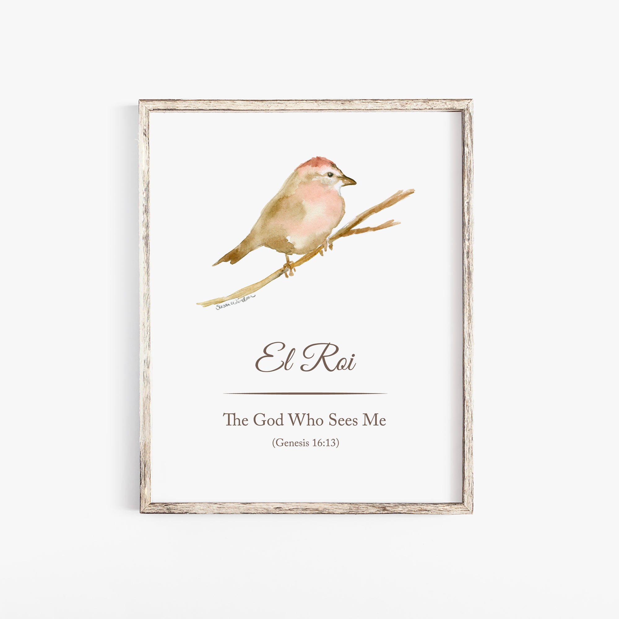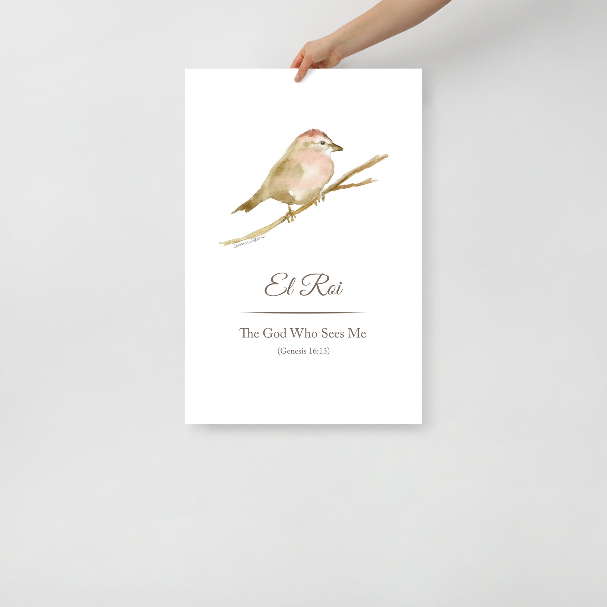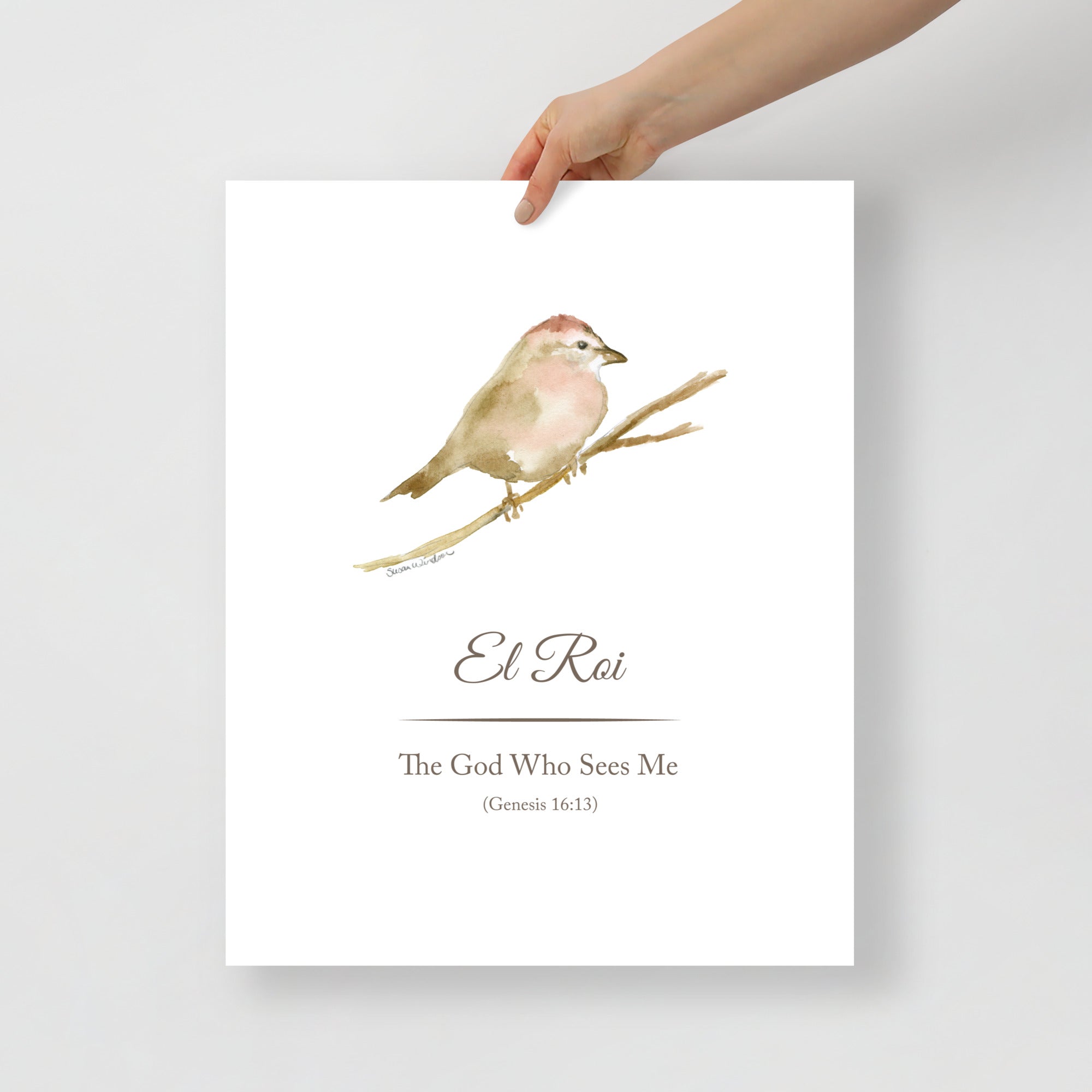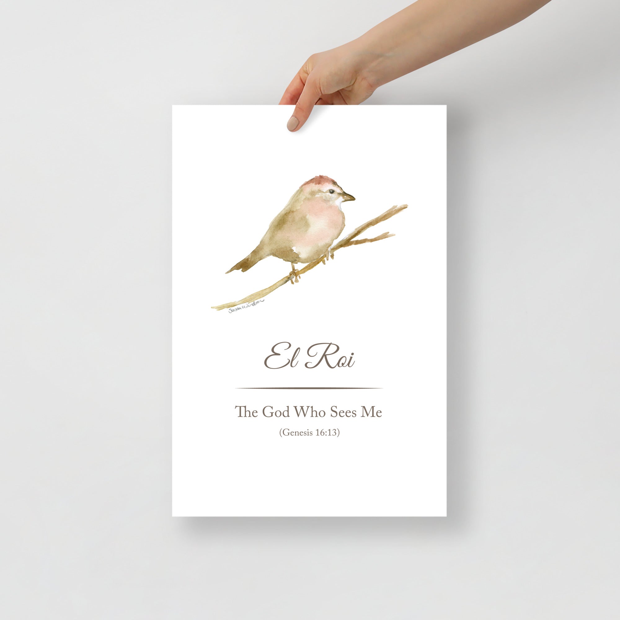 El Roi - The God Who Sees Me - Sparrow Watercolor Painting Large Fine Art Print — UNFRAMED