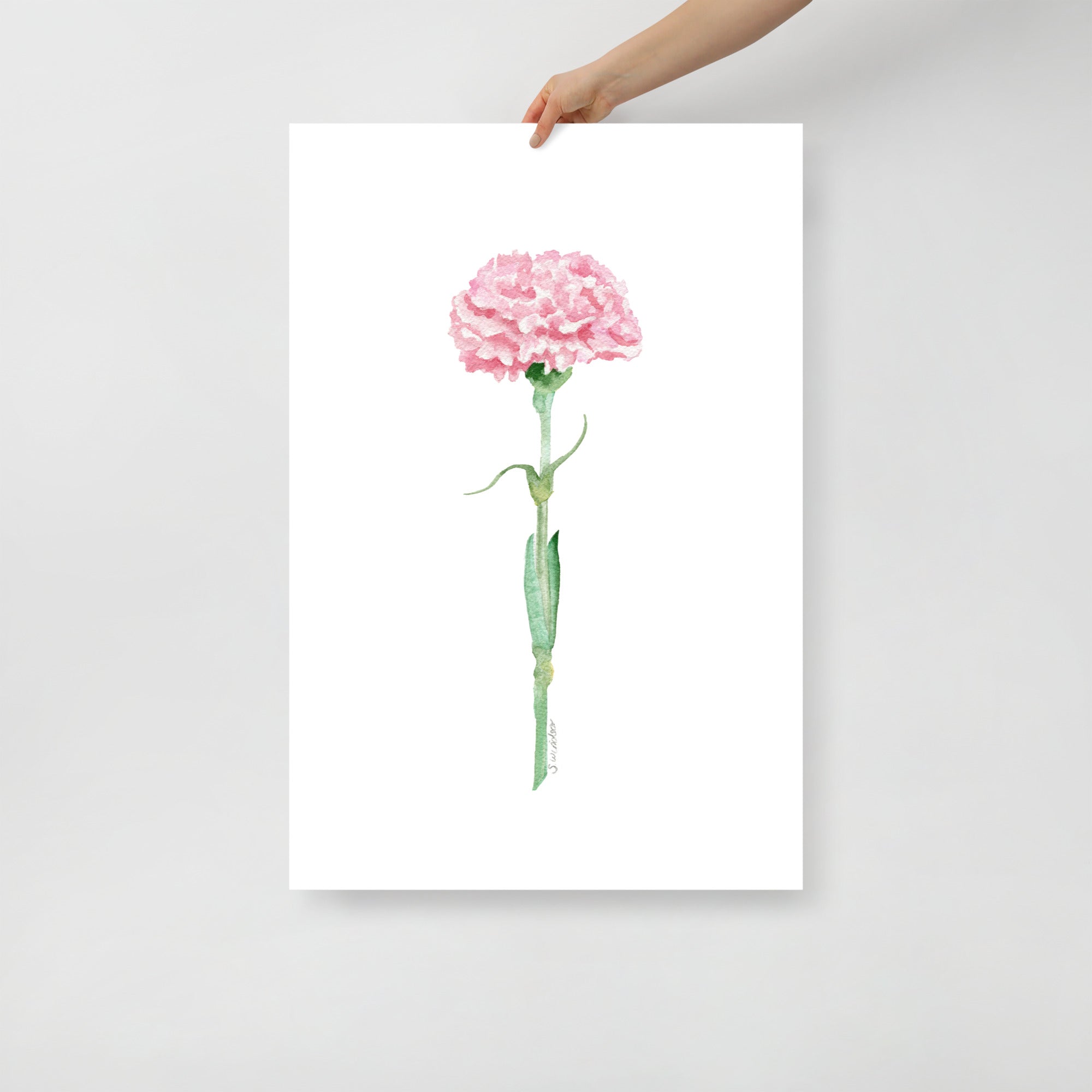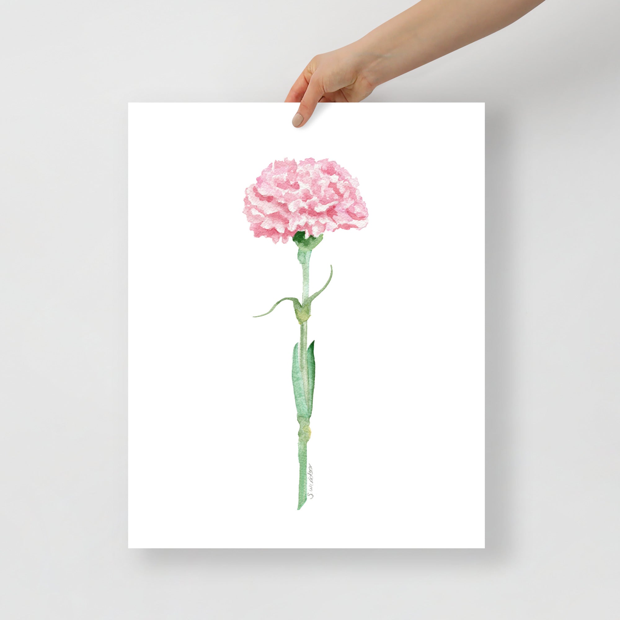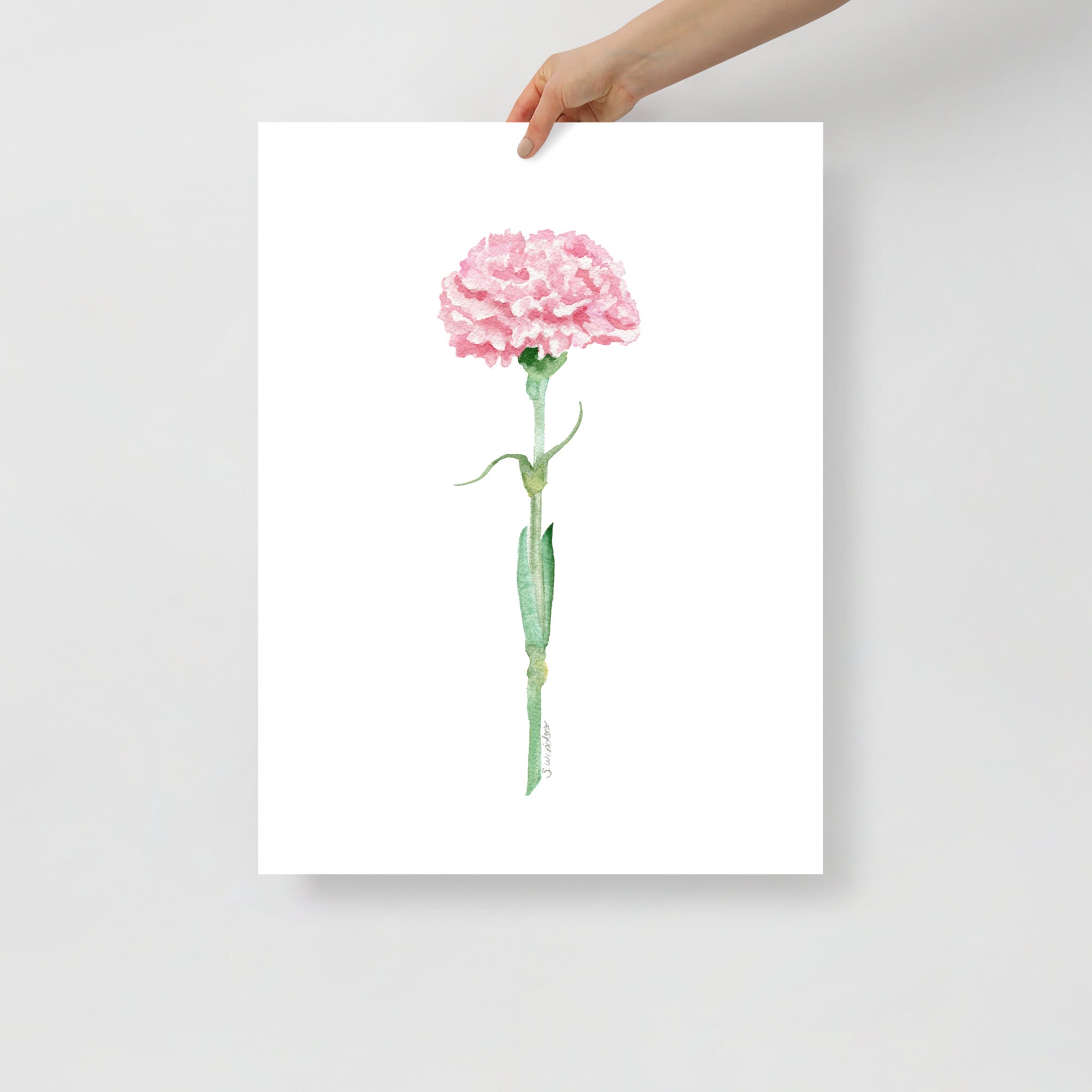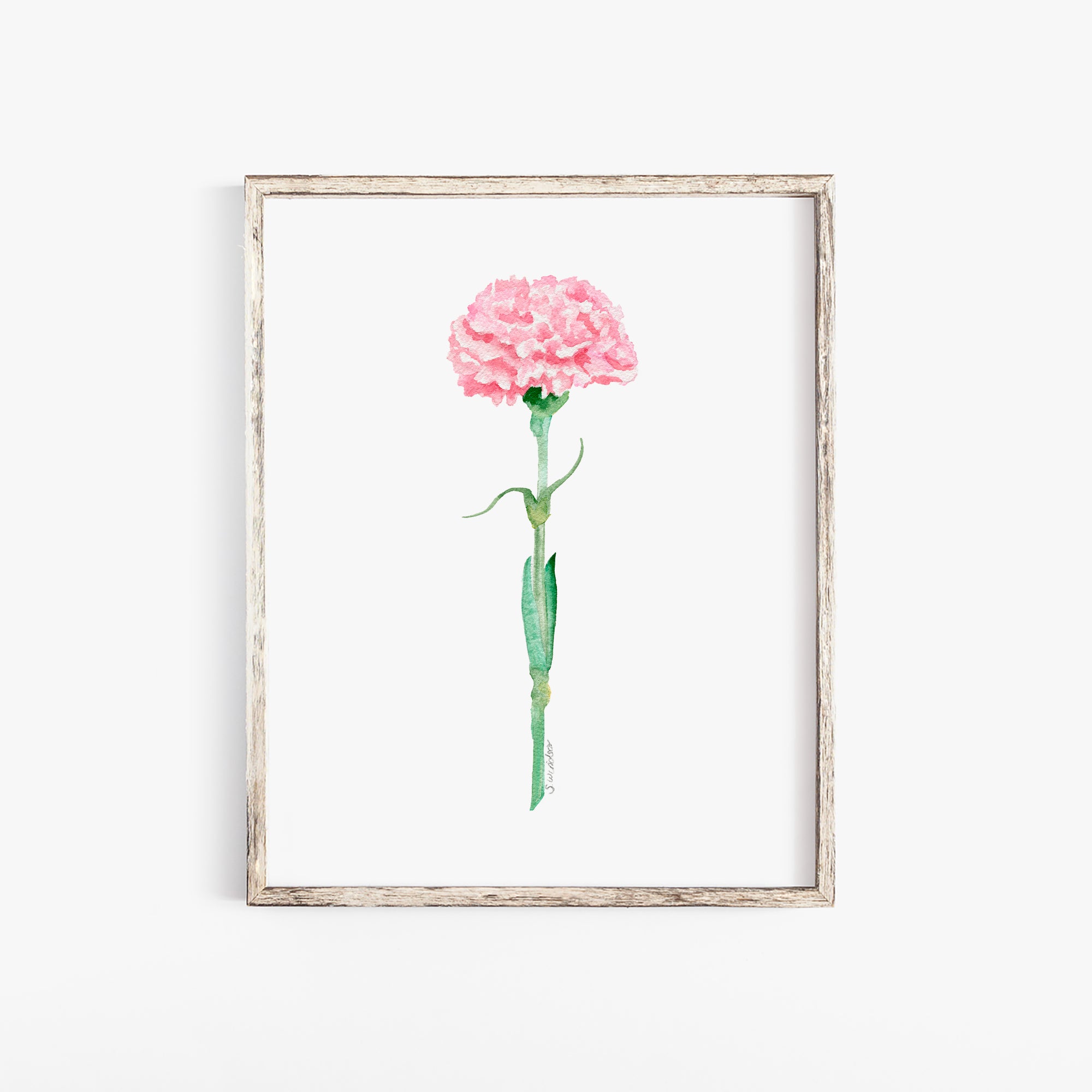 Pink Carnation watercolor fine art print by Susan Windsor. Part of the Flower of the Month collection. This sweet flower welcomes in a new year as January's flower.