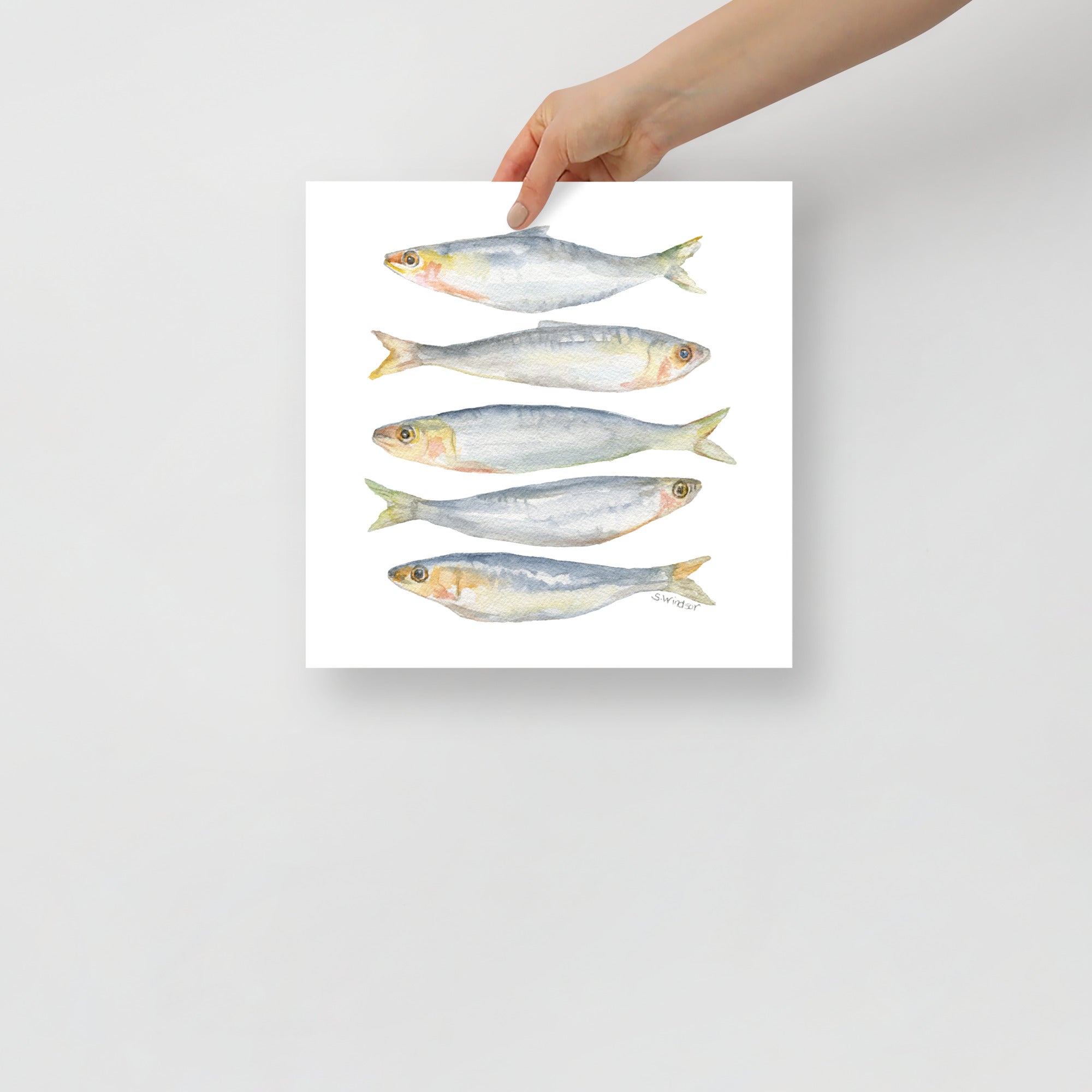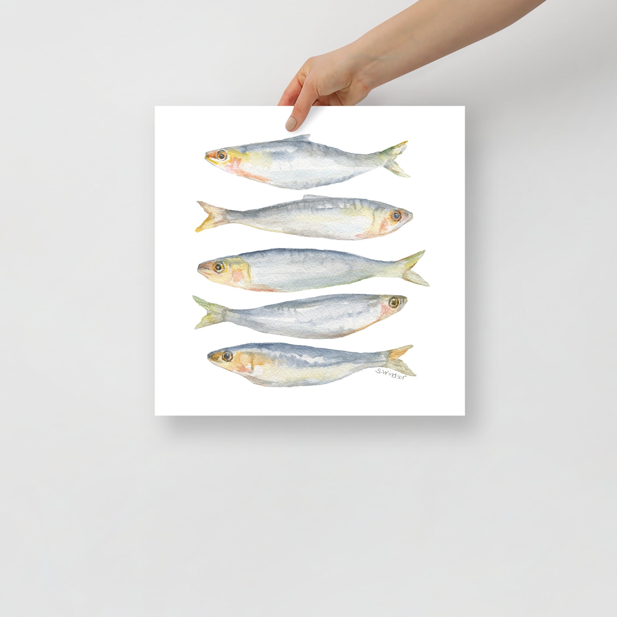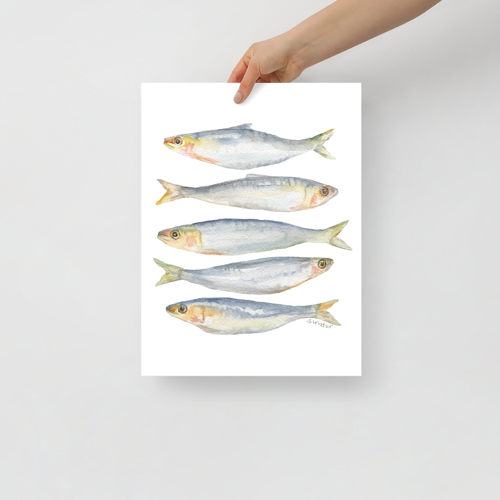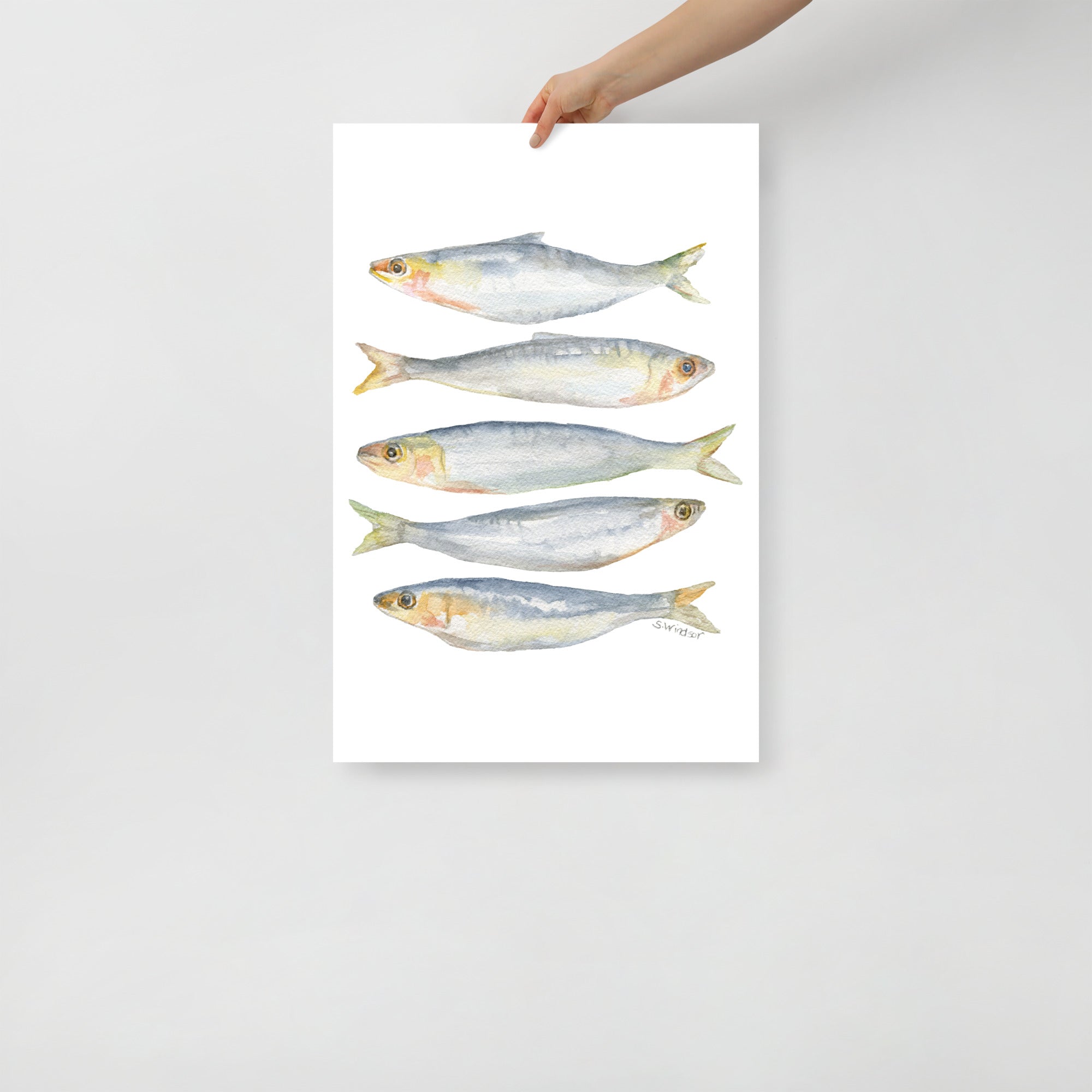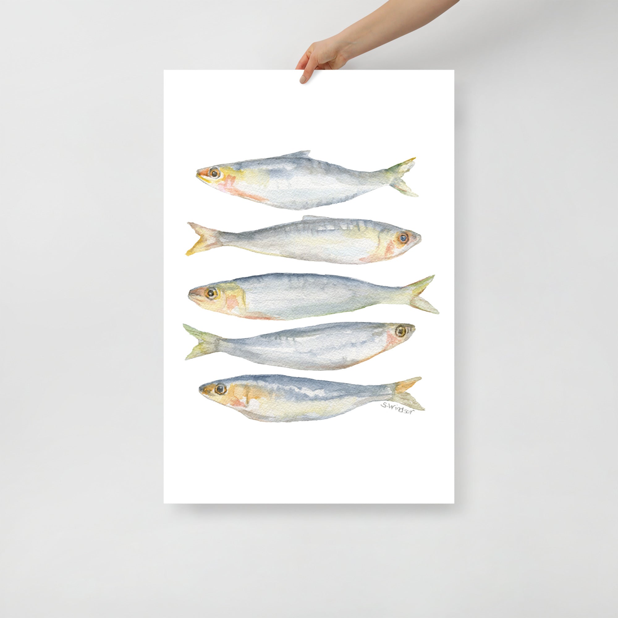 Sardines Watercolor Fine Art Large Poster - Unframed