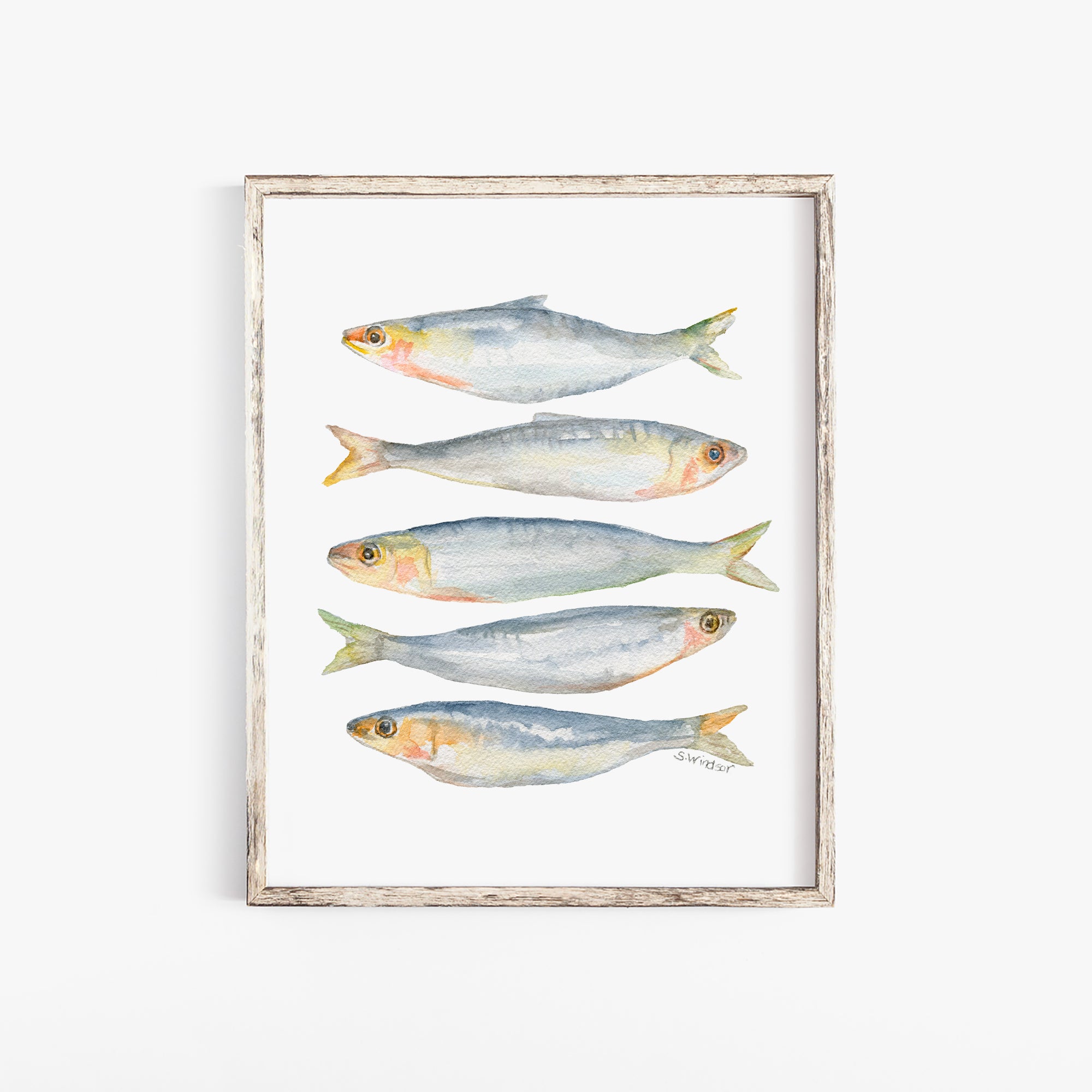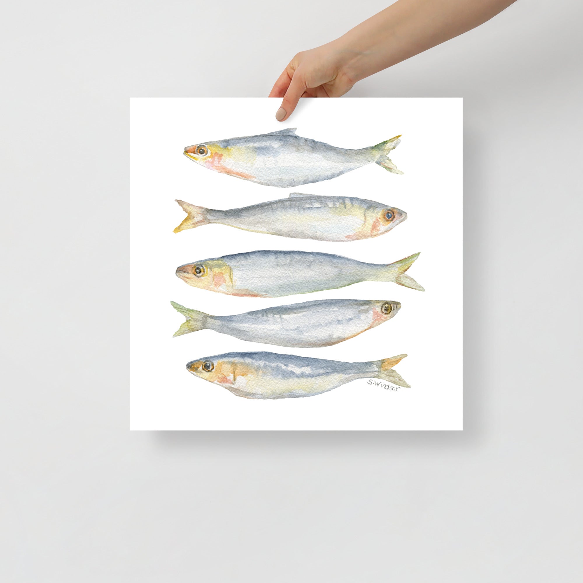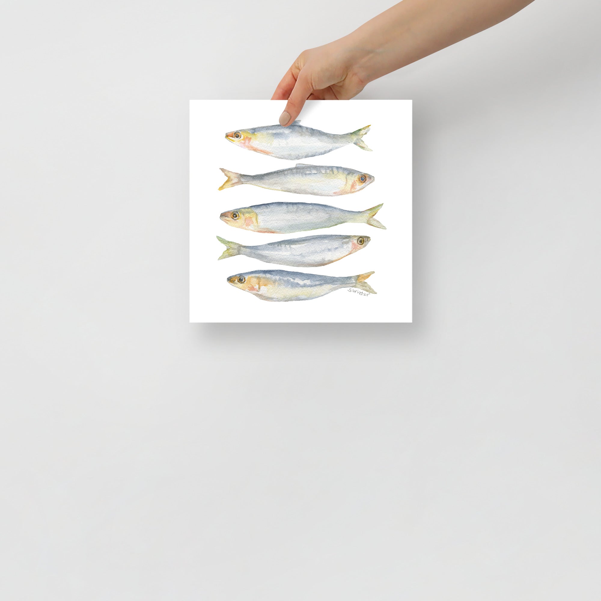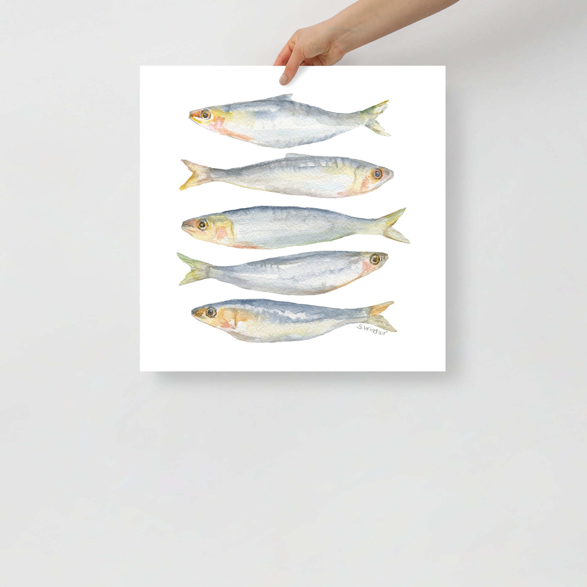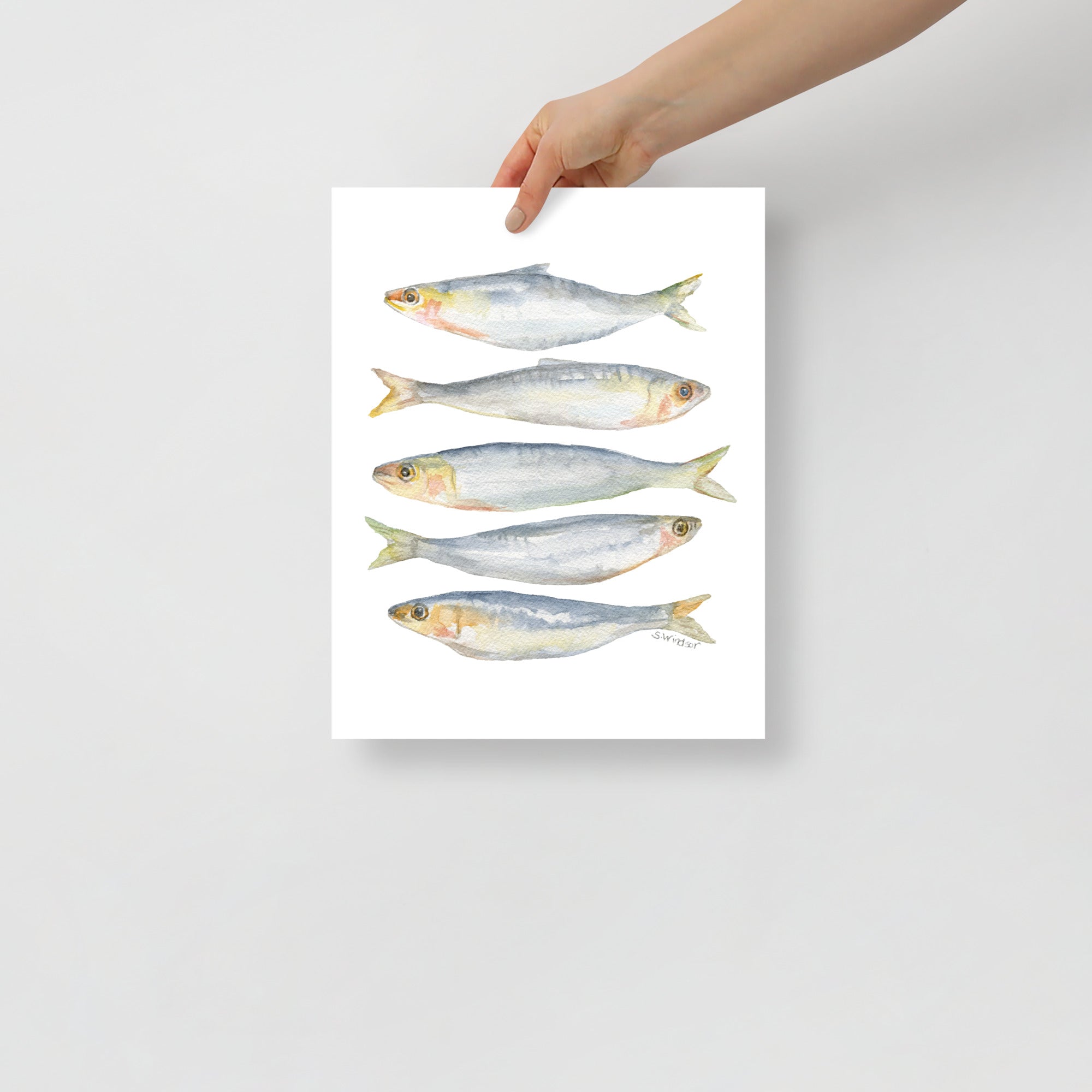 Sardines Watercolor Fine Art Large Poster - Unframed